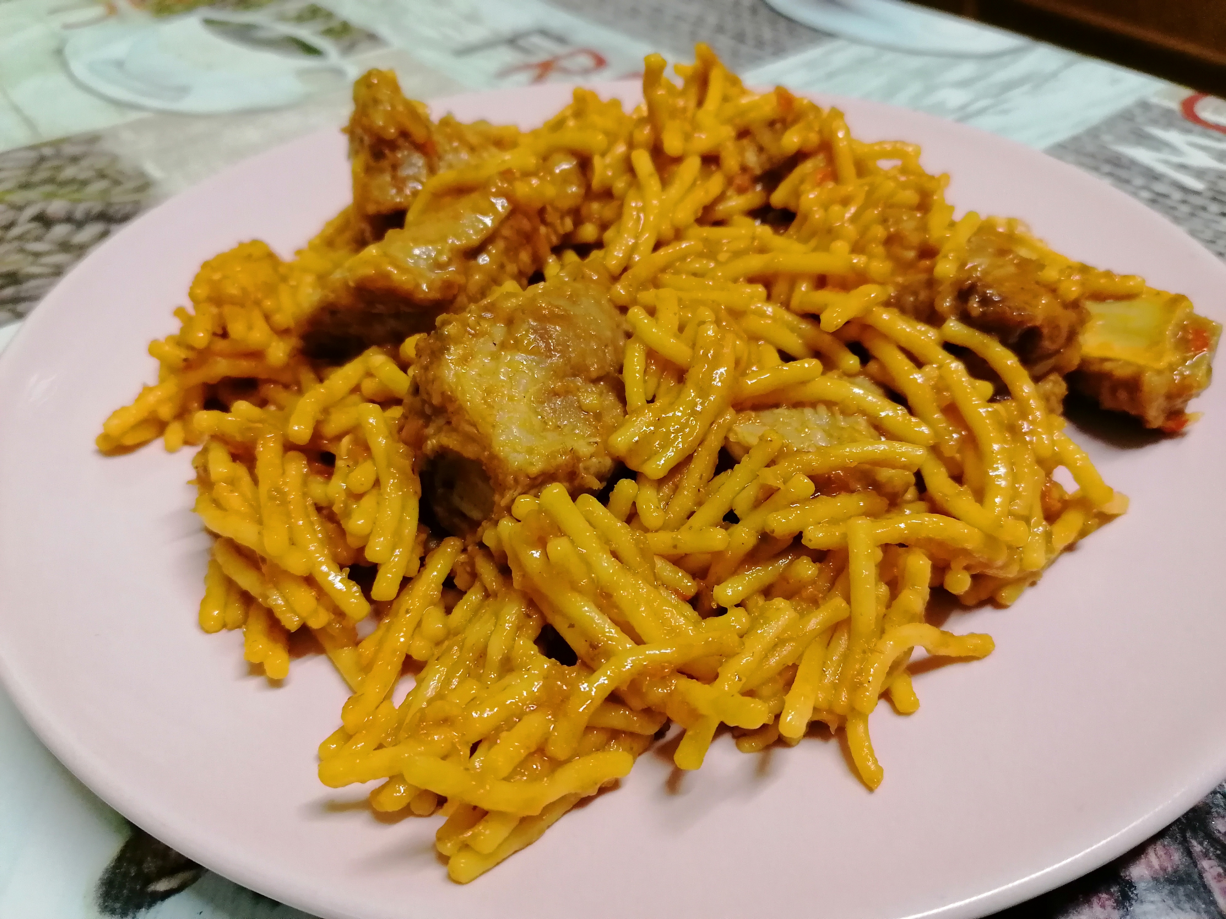 Hoy os quiero compartir un plato que se ha hecho toda la vida en mi casa y que recuerdo desde que era pequeña. Mi madre siempre le llamaba fideos con costilla y yo aprendí a hacerlos también en el fuego y hoy por primera vez he llevado la receta a thermomix.