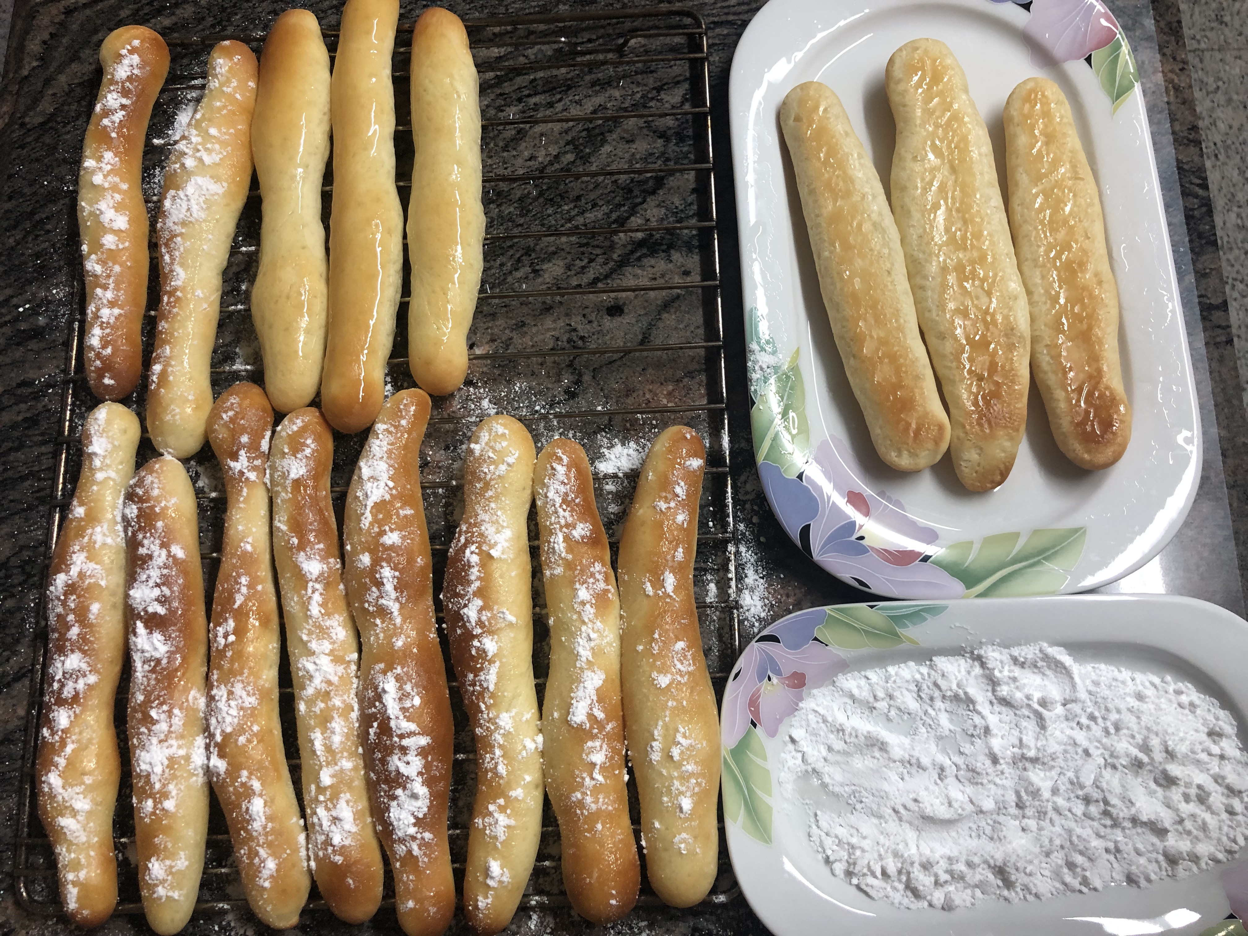 7. Retire del horno y vaya bañándolos en el almíbar. Espolvoreélos con azúcar glas y deje enfriar sobre una rejilla.