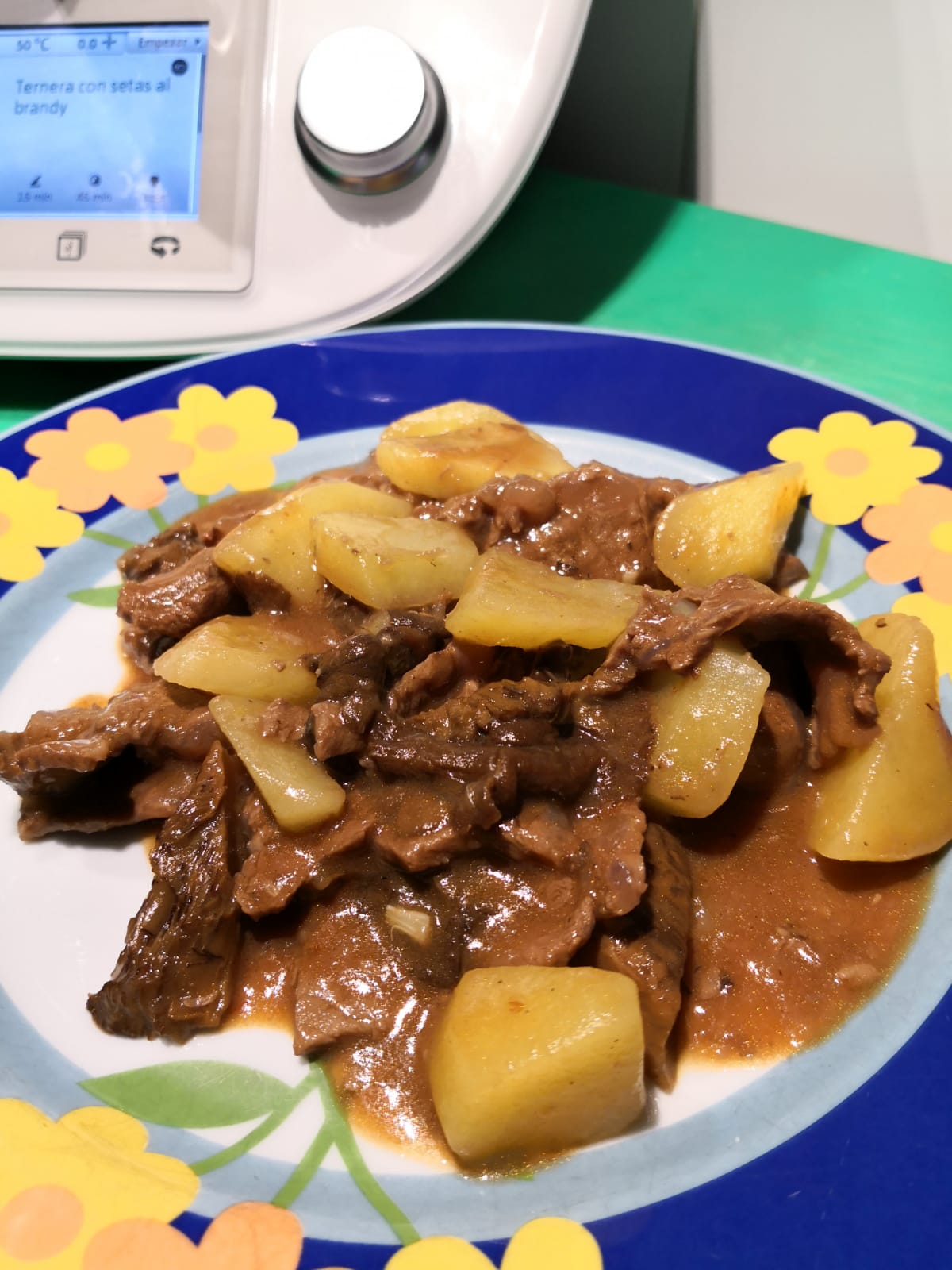 5- incorpora los filetes y el brandy programe 1min/varoma/giro inverso /vel1 sin poner el cubilete