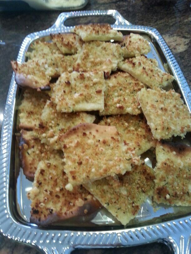 Una capa de pan rallado con ajos y perejil.
